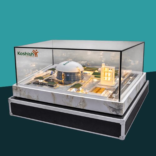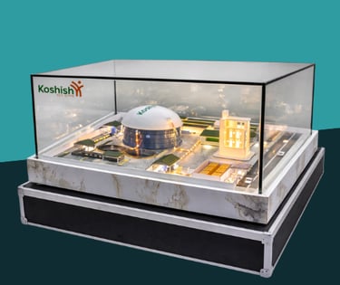 A detailed industrial display model developed for Koshish India to illustrate the operational layout of a poultry bio-gas energy plant.
