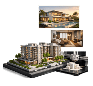 Specialists in high-quality architectural visualization, walkthrough animations, and precision 3D printed display models for architects, developers, and design professionals.