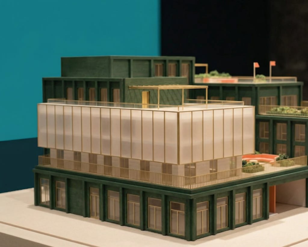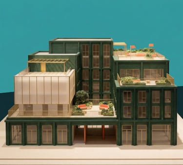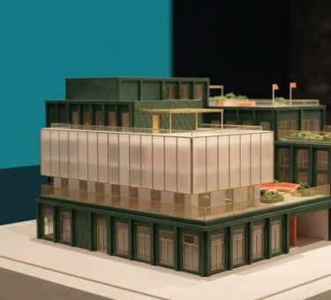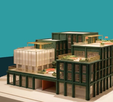 A detailed architectural display model developed for a commercial building project by a Delhi-based architectural firm. The model captures the overall massing, spatial hierarchy, and street-facing presence, helping communicate the design intent clearly during client presentations.