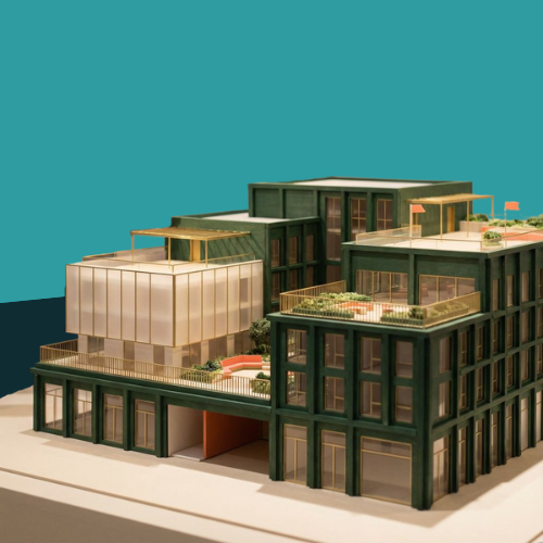 The model highlights façade articulation, material layering, and terrace levels, offering a clear understanding of how the building interacts with its surroundings. Careful attention was given to proportions and volumetric balance to accurately represent the architectural concept.